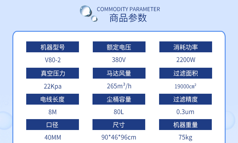 l 耐潔思V80-2是一款工業(yè)吸塵器,機(jī)器具有漏電,缺相、過(guò)熱及過(guò)載保護(hù)裝置,小型的體積適用于工作區(qū)域狹小有不斷有灰塵產(chǎn)生的場(chǎng)所,可固定安裝在大型設(shè)備上作為固定吸塵裝置。適用于各類型清理工作非常繁重的工廠。